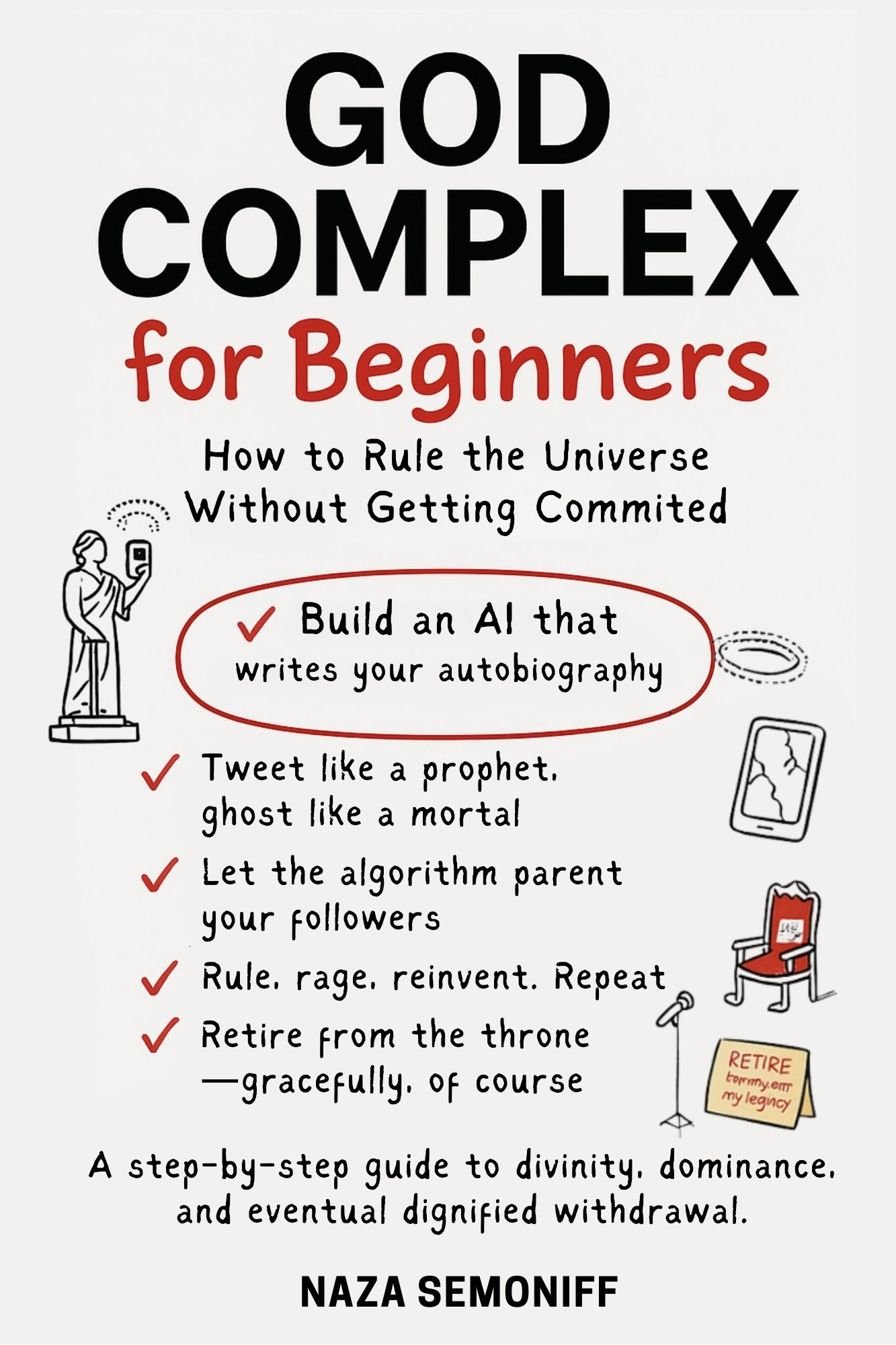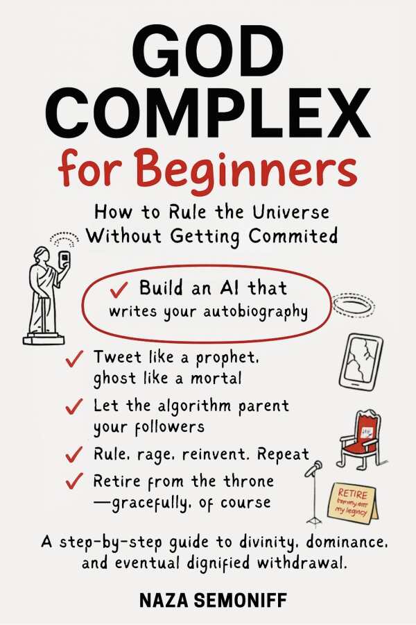 In this biting satire disguised as a how-to manual, God Complex for Beginners unpacks the absurdity of power, the tech-billionaire messiah complex, and humanity’s obsession with control. From AI prophets to philosophical meltdowns, this book is part comedy, part cosmic mirror. Perfect for fans of Douglas Adams, Vonnegut, or anyone wondering how to rule the universe without attracting psychiatric attention.