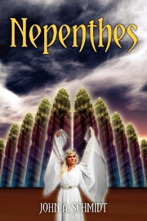 The protagonist of John A. Schmidt’s fantasy novel, Nepenthes, is extraordinarily content for a man with no companions or memory of his past. Initially unnamed, he spends his time munching on fruits and nuts, learning to climb the colorful, mysterious towers that surround him, and sipping from the calm waters of the Spring of Tranquility. While his days are predictable and peaceful, his nights are increasingly filled with dreams of a beautiful, weeping woman to whom he feels inexorably drawn. Soon, his dream vision encourages him to leave his home and travel to her side, and he embarks on a dangerous journey that shatters his passive contentment and leads him down a path to both love and war.