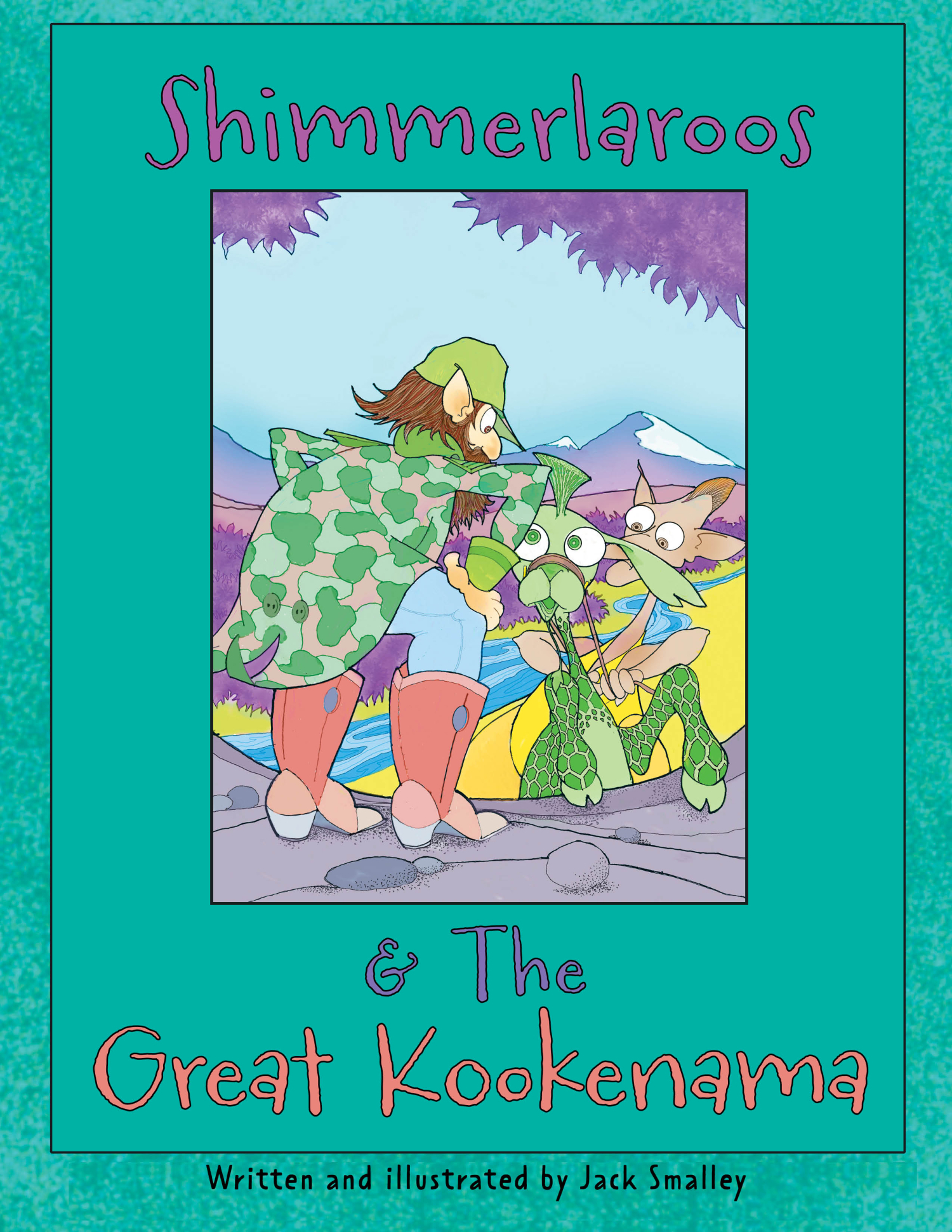 The illustrations have a computer-generated quality. Still, their vibrant colors and character designs are engaging and fun. The Shimmerlaroos, with their elfin ears and long noses, and the Kookenama’s trucker’s hat and cowboy boots are visually interesting and entertaining. At times, though, the variety of colors, busy backgrounds, and dark border lines clutter the pages.