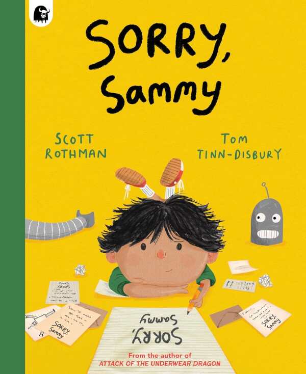 An amusing picture book written in epistolary form, this story covers an accidental robot invasion in reverse. Sammy’s intentions when building his robot were pure, which is why he resents his mother asking him to apologize to those whose help he solicited—and whose lives he impacted when he unleashed his creation on the world. Sammy cajoles, reasons, and prevaricates; elements of his inventive, creative personality (and truly sweet spirit) are revealed, though sincere apologies are delayed by his pride. The bright illustrations center the exasperated and befuddled expressions of the surrounding cast, driving home the book’s humor.