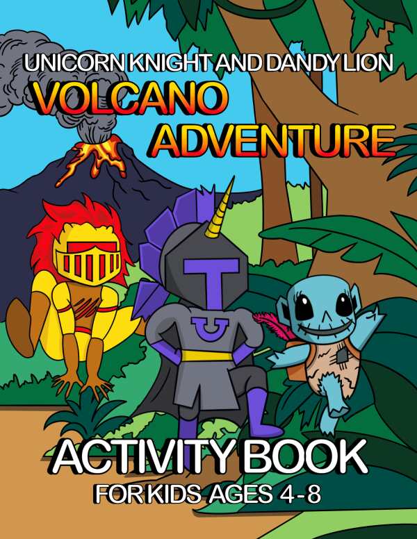 The engaging activity book Unicorn Knight and Dandy Lion: Volcano Adventure encourages creativity, scientific curiosity, and interest in the fantasy tales it draws from.
